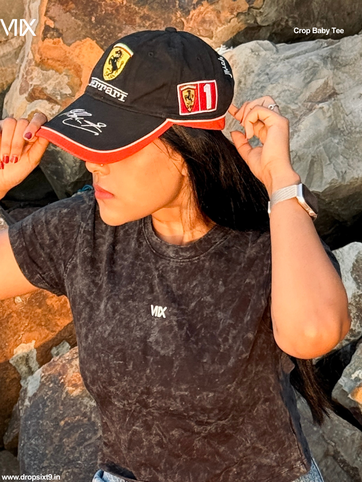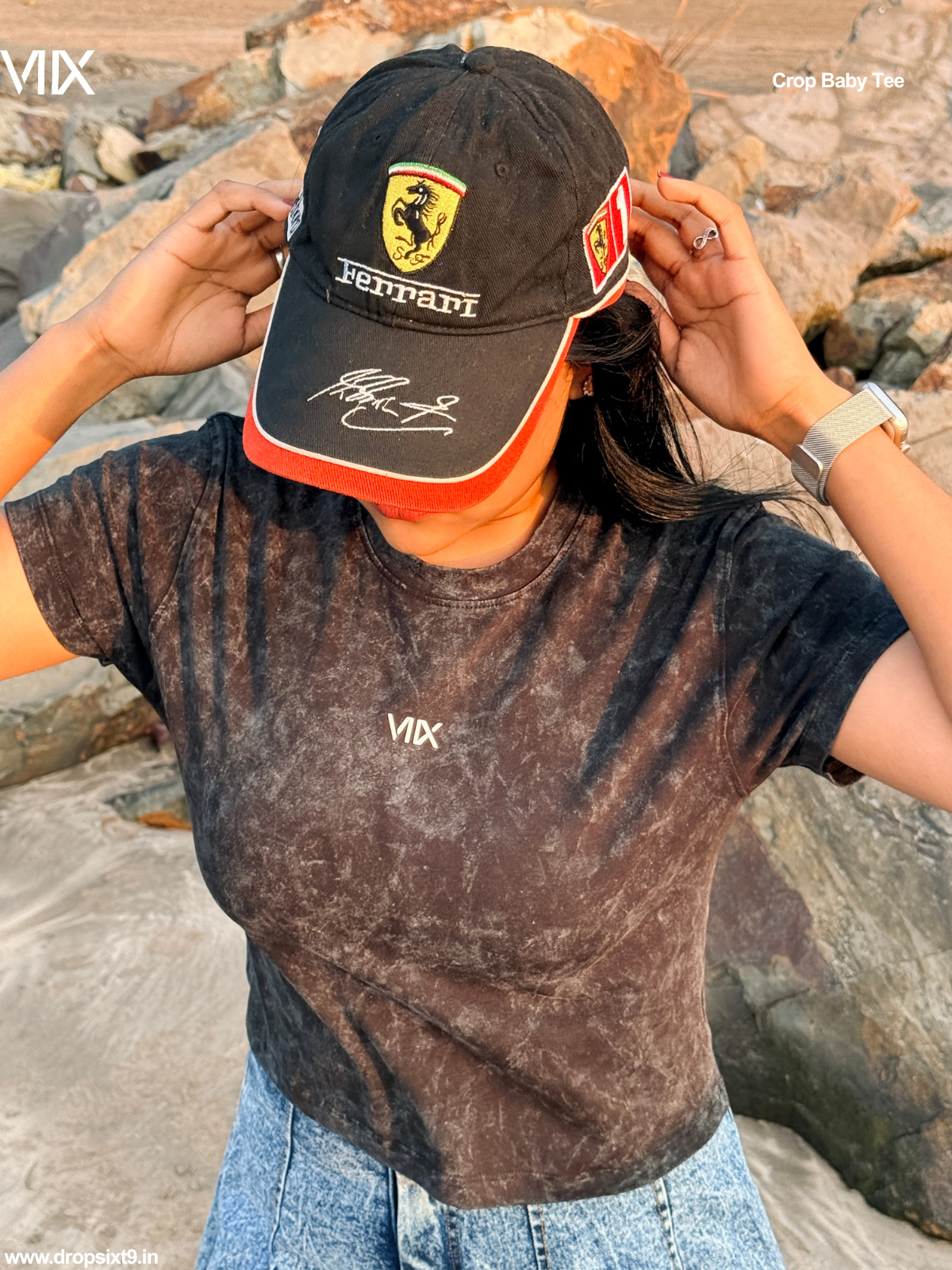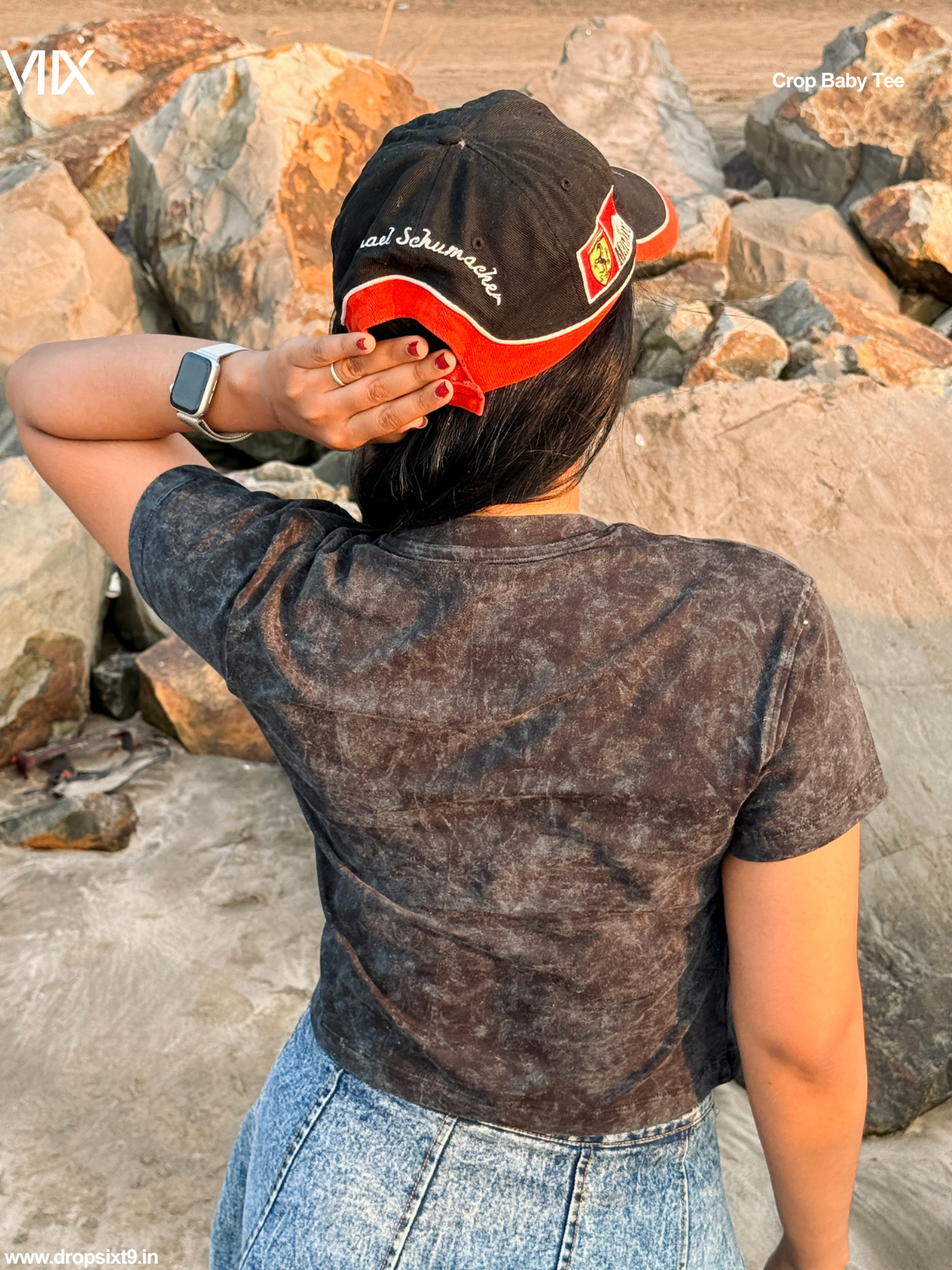 Dropsixt9 Charcoal Acid washed Cropped Baby Tee For Women